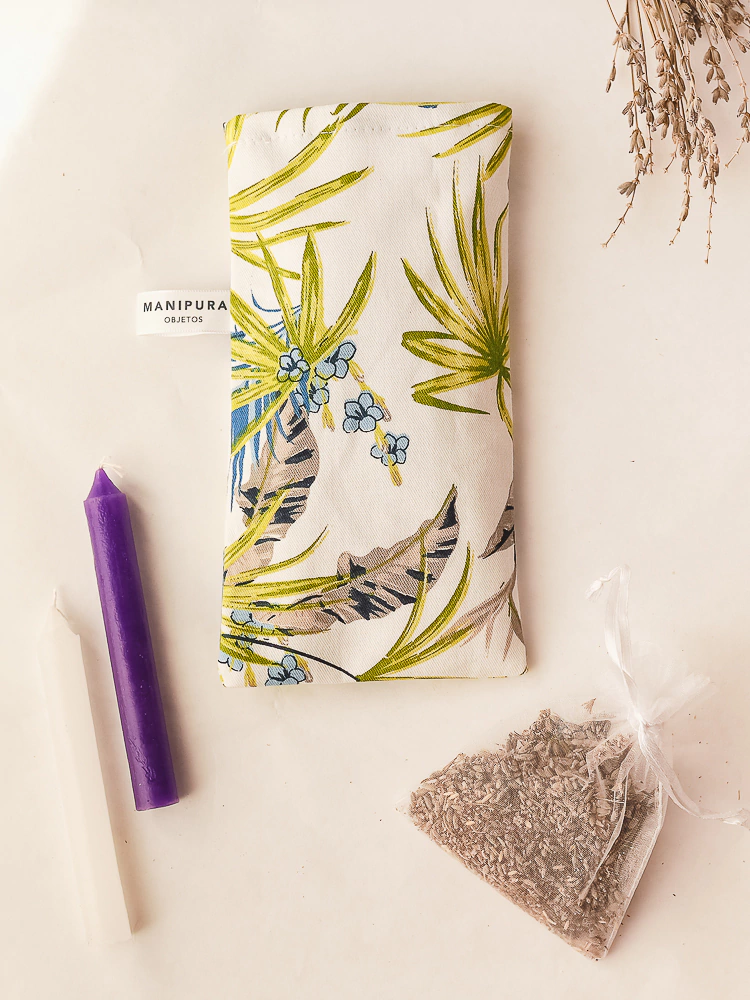 La Bienestar Box contiene: - Almohadilla ocular con funda lavable, ideal para aliviar la tensión y brindar comodidad. - Bolsita de flores de lavanda orgánica, perfecta para disfrutar de su aroma relajante. - Dos velas cortas, una violeta y una blanca, que aportan una luz suave y tranquilizadora.